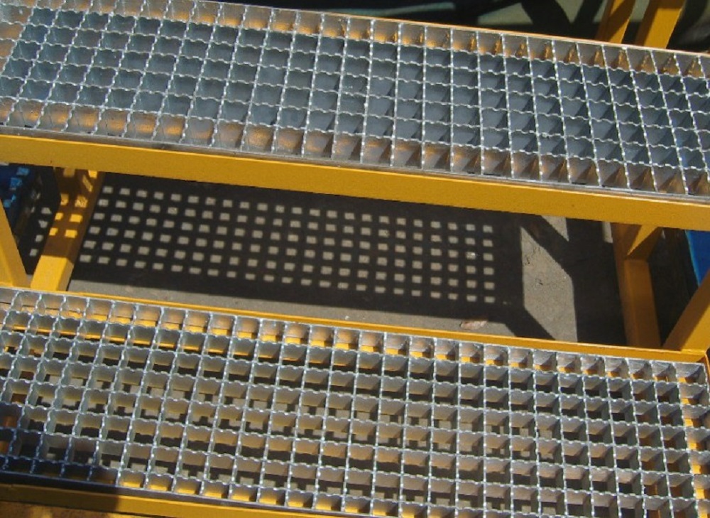 压锁钢格板的横杆通常为 20×5 /12×5/12×3的扁钢(或其它规格),通过强大压力压入承载扁钢,扁钢间的节点处通过变形产生的挤压力自动锁紧,可使用普通碳钢、铝合金或是不锈钢制成。 由于标准压锁钢格板结构为垂直两个方向对插构成,形成较标准压焊钢格板更为良好的外观效果,尤其适合于作为货架平台、格子窗、隔断栏、采光栅、室内吊顶等。另外,由于此种结构的钢格板能提供更好的侧向(钢格板宽度方向)承载能力,并且能有效防止大规格的承载扁钢产生倾斜失稳的问题,压锁钢格板特别适合作为重荷载钢格板使用。